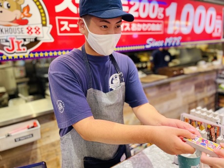 ステーキハウスのフードコート店STAFF/面倒な配膳作業やテーブルのバッシングなどは一切なし!お肉好きには嬉しい従業員割引アリ!もちろン美味しいまかないもあります!